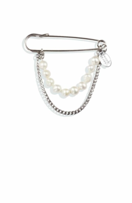 De combinatie van staal en parels zorgt voor een opvallende en moderne look die past bij zowel casual als edgy outfits. Met een breedte van 8 cm is deze broche een echte eyecatcher.
